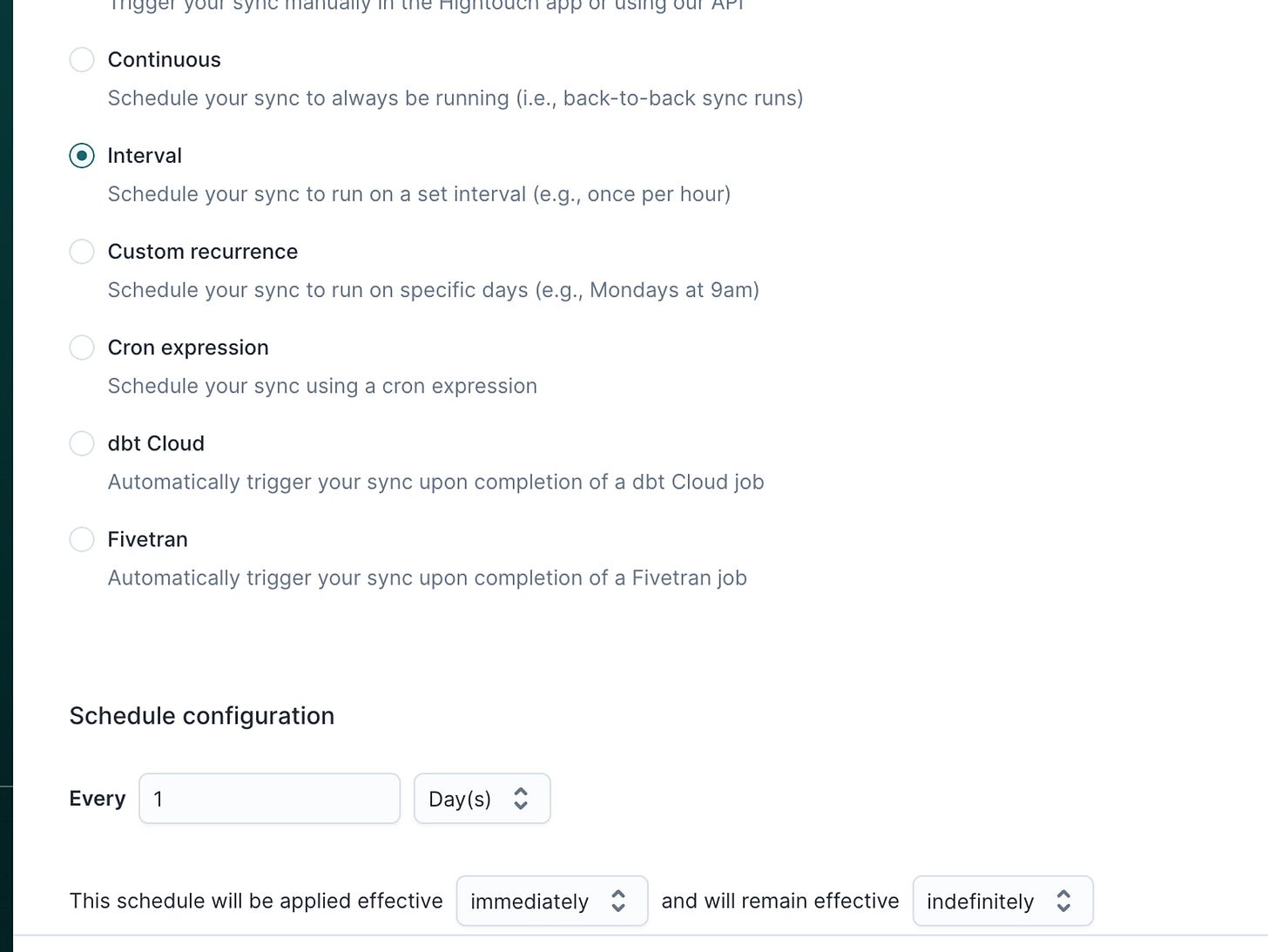 In the future state, we would want to refresh this data from time to time, so I would do something like join against a date table so that whenever the fiscal quarter changes, we would rerun the model. Hightouch's diff functionality would rerun every time a column changes.